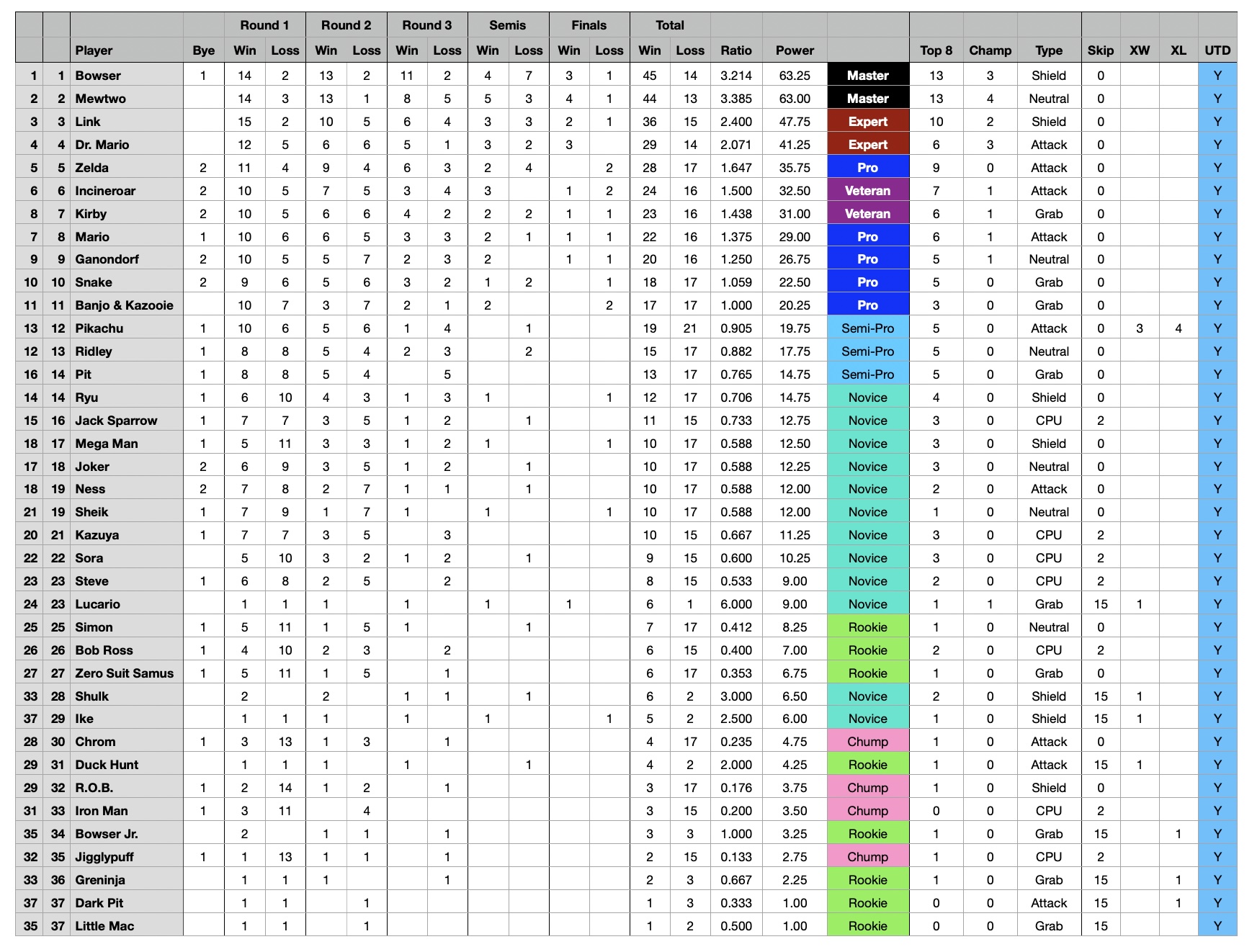 I regained a bit of this inner child during my junior year, when I joined the university's Smash Bros Club and started becoming genuinely interested in competing in tournaments. I met some fun people, burnt the midnight oil many times, and of course, made lots of spreadsheets.