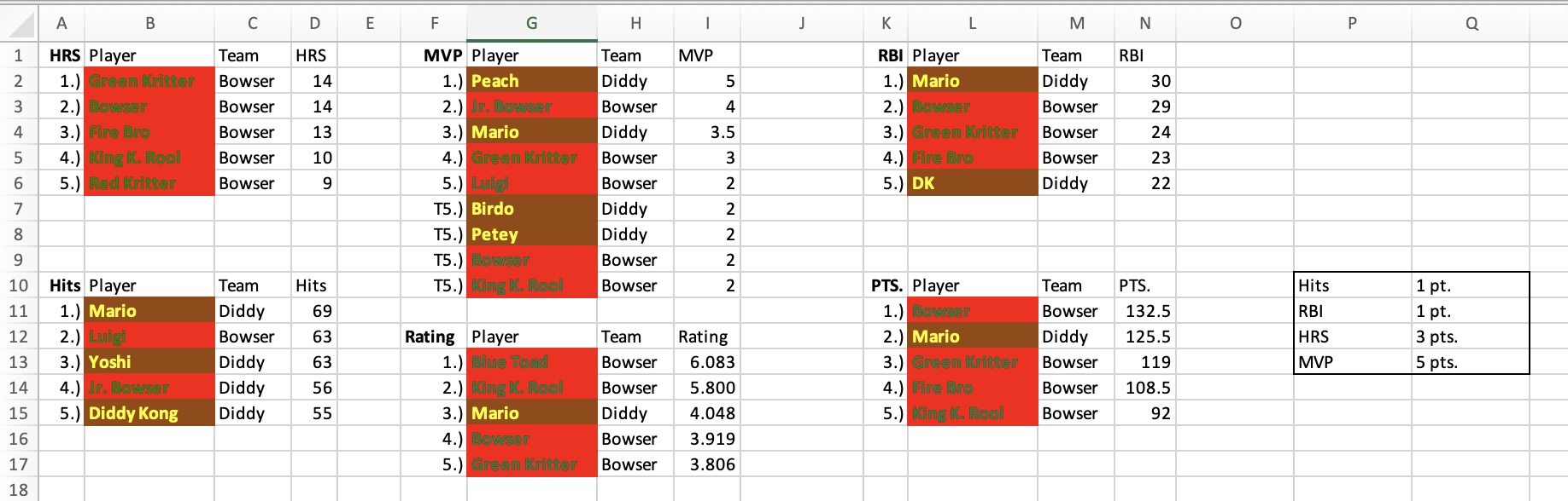 As kids, my brother and I created countless imaginary leagues, competitions, and games to keep ourselves entertained - Pokemon tournaments with our collection of 200+ figurines, stuffed animal basketball leagues, spreadsheets to track who was better at Mario Super Sluggers, and many others.